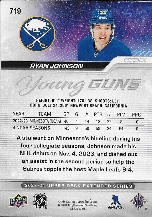 Signed Ryan Johnson UD Young Guns 2023-24 Buffalo Sabres Rookie Card Original
