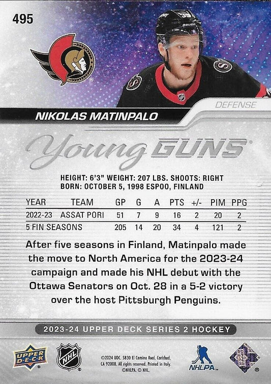 Signed Nikolas Matinpalo Young Guns 2023-24 UD Ottawa Senators Rookie Card