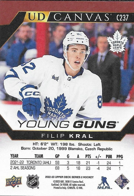 Signed Filip Kral 2022-23 UD Canvas Young Guns Toronto Maple Leafs Rookie Card
