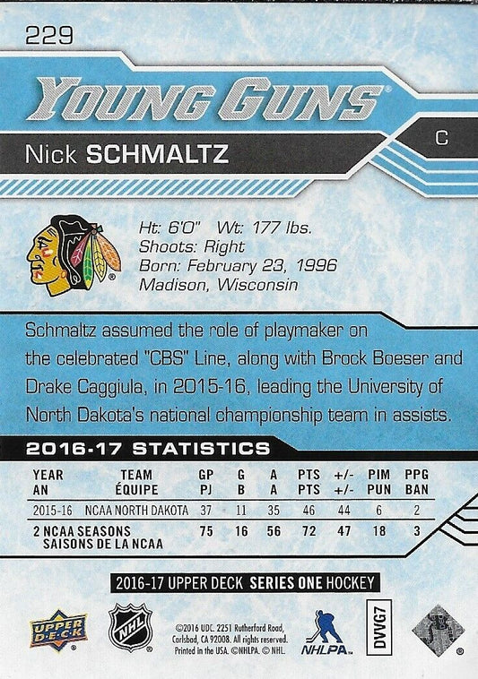 Signed Nick Schmaltz Chicago Blackhawks 2016-17 Upper Deck Young Guns Card