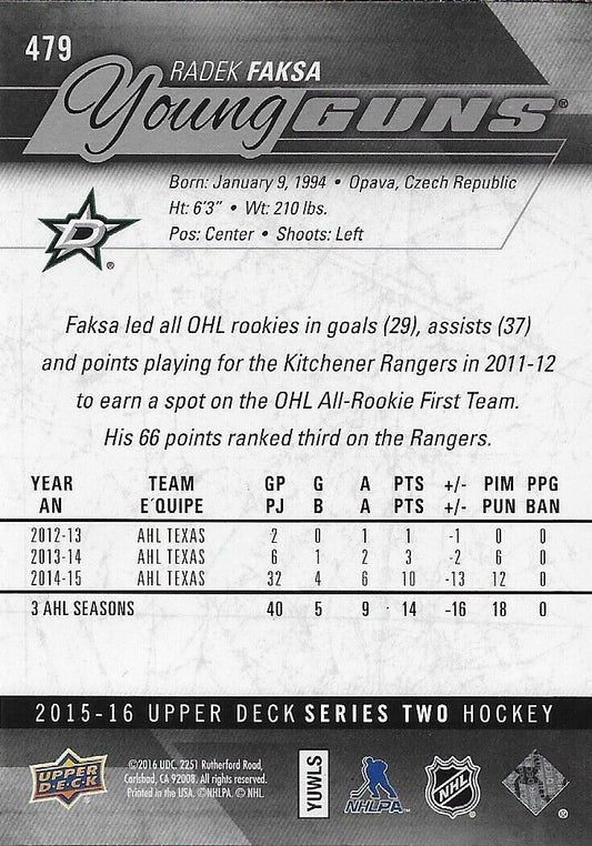 Signed Radek Faksa 2015-16 UD Young Guns Dallas Stars Rookie Card