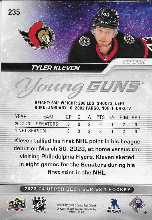 Signed Tyler Kleven 2023/24 UD Young Guns Ottawa Senators Rookie Hockey Card