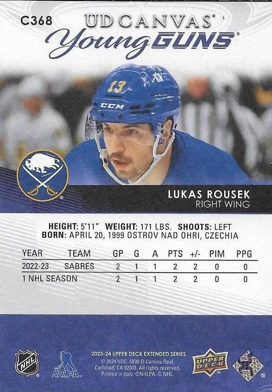 Signed Lukas Rousek UD Young Guns Canvas 2023-24 Buffalo Sabres Rookie Card