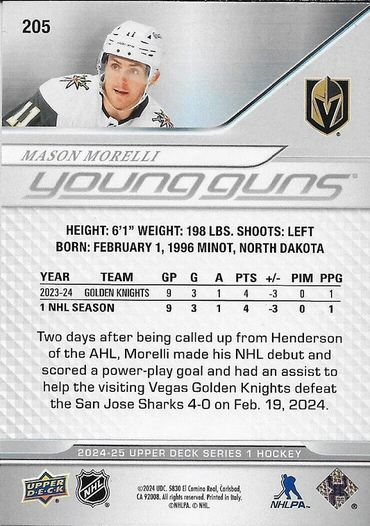 Signed Mason Morelli Young Guns 2024-25 UD Vegas Golden Knights Rookie Card