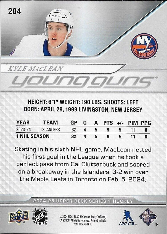 Signed Kyle MacLean Young Guns 2024-25 UD New York Islanders Rookie Card