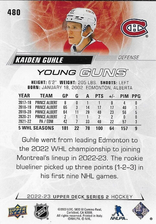 Signed Kaiden Guhle Young Guns 2022-23 UD Montreal Canadiens Rookie Card