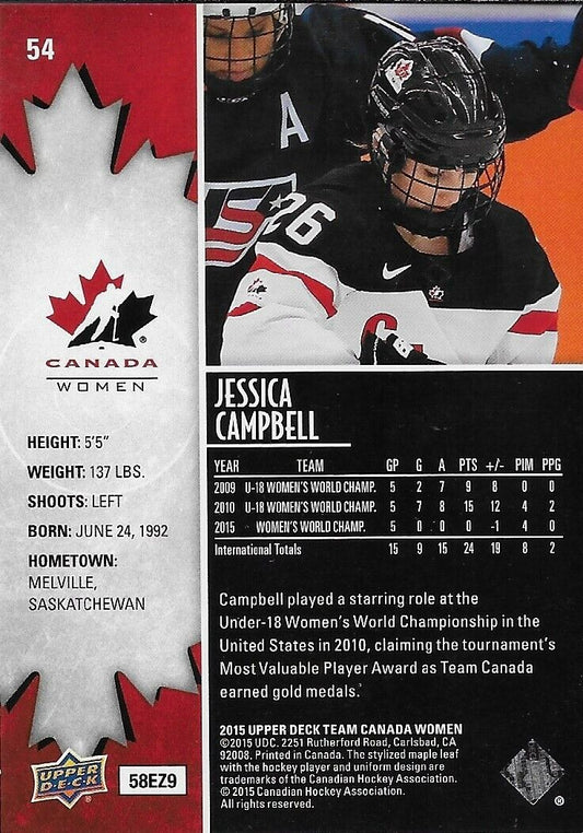 Signed Jessica Campbell 2015 UD Team Canada Women Card Seattle Kraken