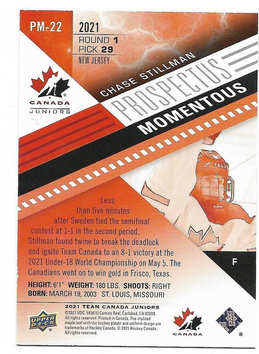 2021 Team Canada Chase Stillman Prospectus Momentous Electric red /275