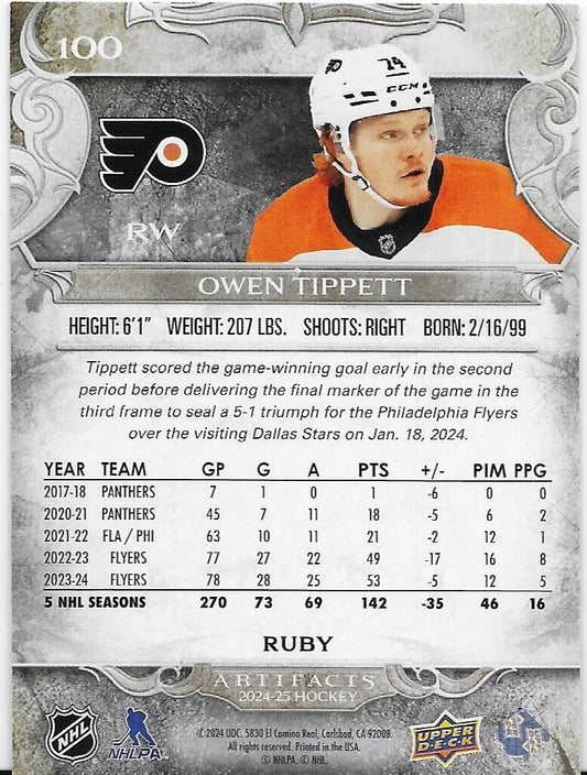 2024-25 Upper Deck Artifacts Hockey Philadelphia Flyers Owen Tippett 488/499 100