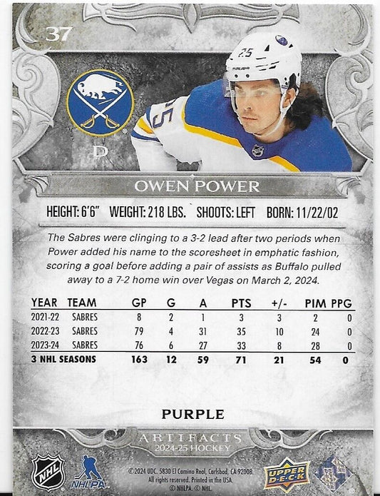 2024-25 Upper Deck Artifacts Hockey Buffalo Sabres Owen Power Purple 11/25 #37