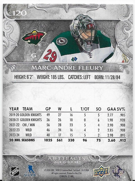 2024-25 Upper Deck Artifacts Hockey Minnesota Wild Marc Andre Fleury Foilboard