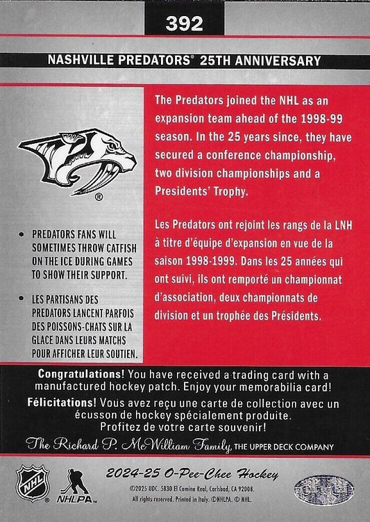 2024-25 O-Pee-Chee Hockey Nashville Predators 25th Anniversary Patch SSP