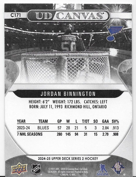2024-25 Upper Deck Series 2 Hockey Jordan Binnington Black White Canvas Blues