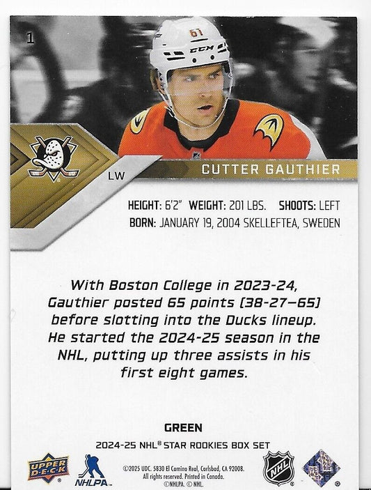 2024-25 Upper Deck Star Rookies Cutter Gauthier Green Parallel 5/5 Anaheim Ducks