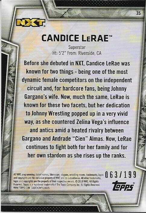 Autographed 2018 Topps NXT Wrestling WWE Candice LeRae Insert Card 063/199 Grey