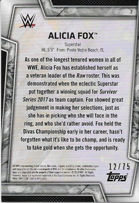 Autographed 2018 Topps Wrestling WWE Alicia Fox Insert Card 12/75