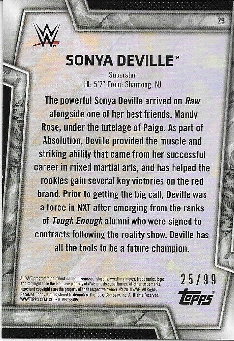 Autographed 2018 Topps Wrestling WWE Sonya Deville Insert Card 25/99