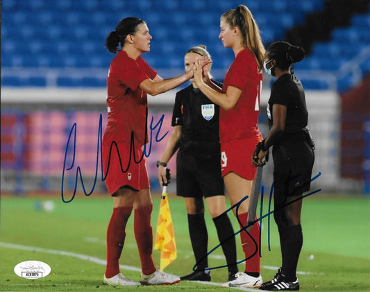 Photo 8x10 signée Christine Sinclair Jordyn Huitema Soccer Tokyo Olympics avec JSA