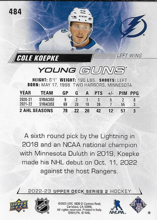 Signed Cole Koepke 2022-23 UD Tampa Bay Lightning Young Guns Rookie Card
