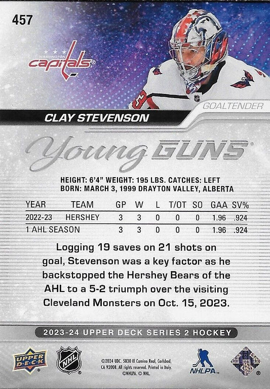 Carte de recrue signée Clay Stevenson Young Guns 2023-24 UD Washington Capitals