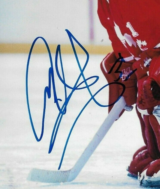 Photo originale signée Corey Hirsch, gardien de but des Canucks de Vancouver, équipe canadienne, 8 x 10, n° 1