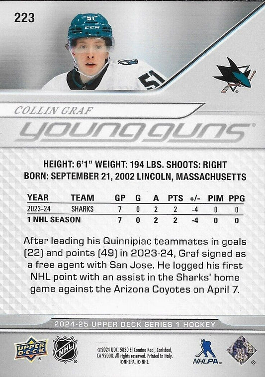 Signed Collin Graf 2024-25 UD Young Guns San Jose Sharks Rookie Card