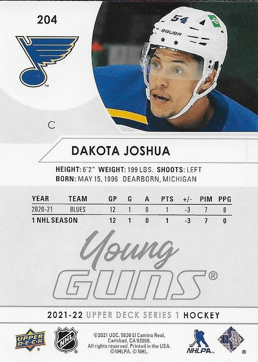 Carte de recrue autographiée par Dakota Joshua Young Guns 21-22 UD des St. Louis Blues
