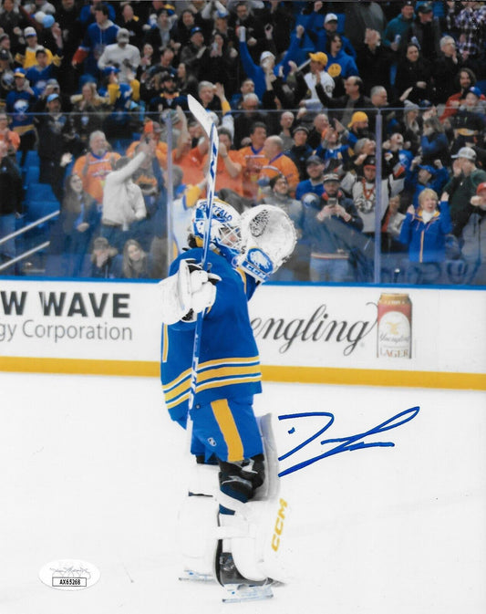 Photo autographiée 8x10 signée Devon Levi des Buffalo Sabres #1 avec authentification JSA