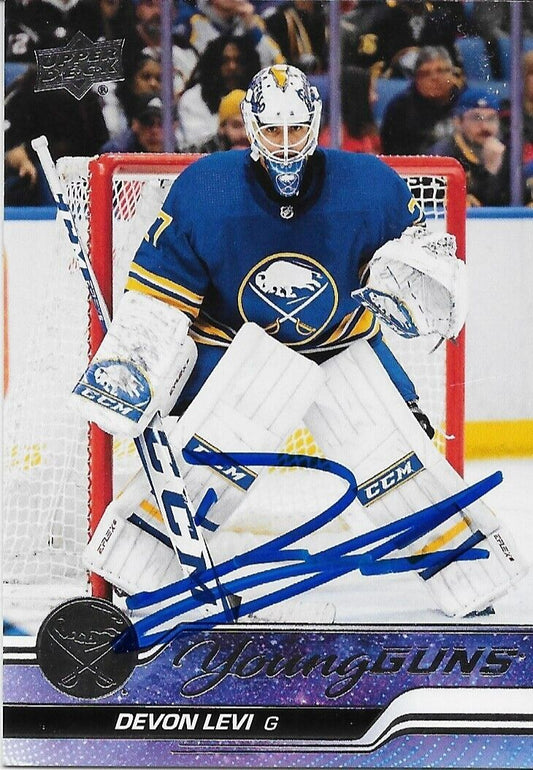 Signed Devon Levi 2023-24 UD Young Guns Buffalo Sabres Rookie Card