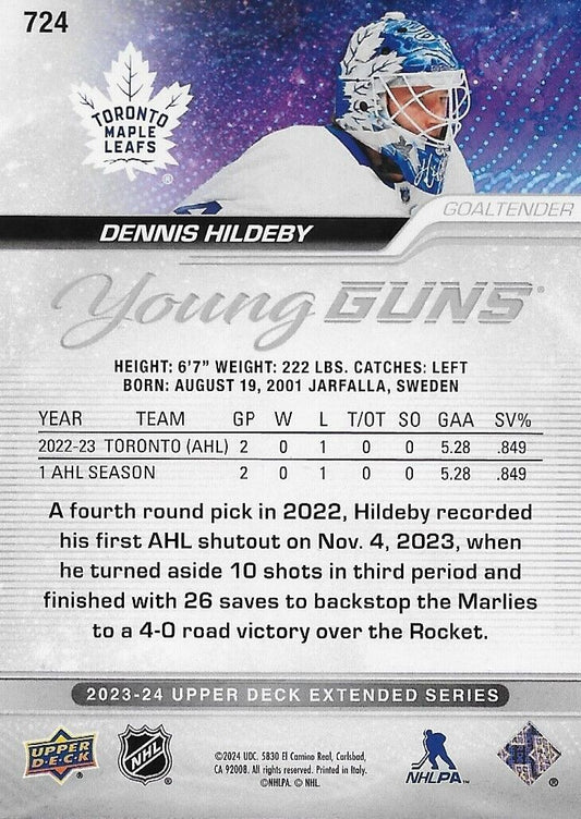 Carte de recrue signée Dennis Hildeby 2023-24 UD Young Guns des Maple Leafs de Toronto