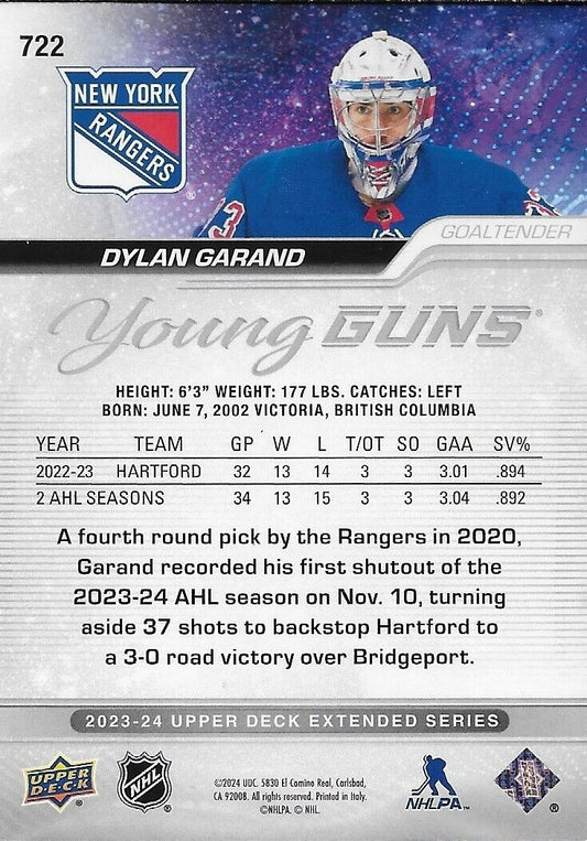 Signed Dylan Garand Young Guns 2023-24 UD New York Rangers Rookie Card