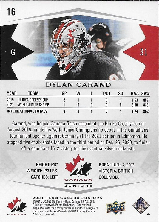 Signed Dylan Garand 2021 Team Canada Juniors UD New York Rangers Prospect Card