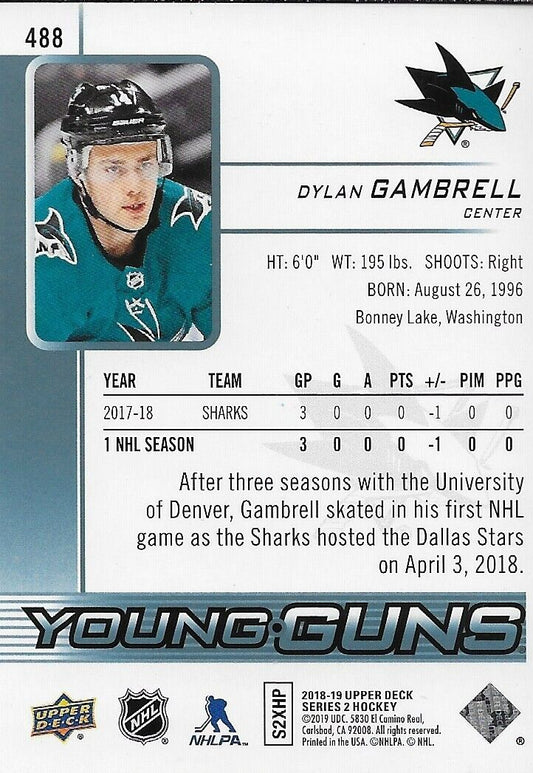 Signed Dylan Gambrell 2018-19 UD Young Guns San Jose Sharks Rookie Card