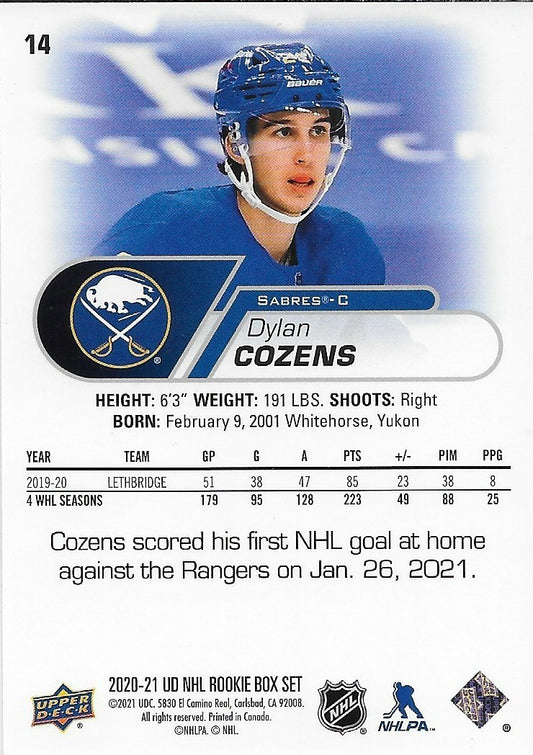 Signed Dylan Cozens 2020-21 UD NHL Rookie Box Set Buffalo Sabre Rookie Card