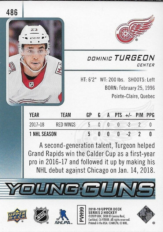 Carte signée Dominic Turgeon des Red Wings de Détroit 2018-19 Upper Deck Young Guns