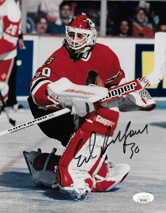 Signed Ed Belfour Chicago Blackhawks Goalie 8x10 Photo #1 w JSA Authentication