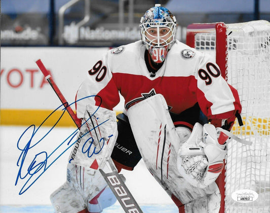 Photo autographiée 8x10 signée Elvis Merzlikins des Blue Jackets de Columbus #1 avec JSA