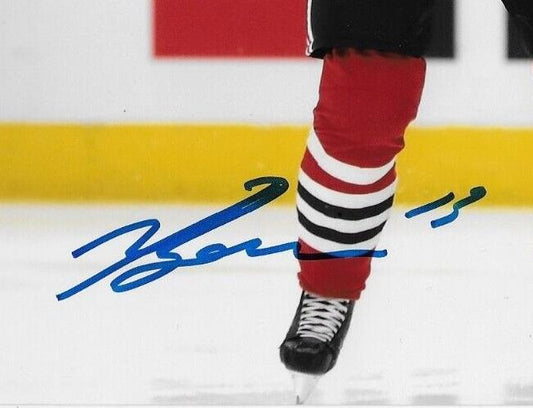 Photo originale autographiée de Dominik Kahun des Blackhawks de Chicago 8x10