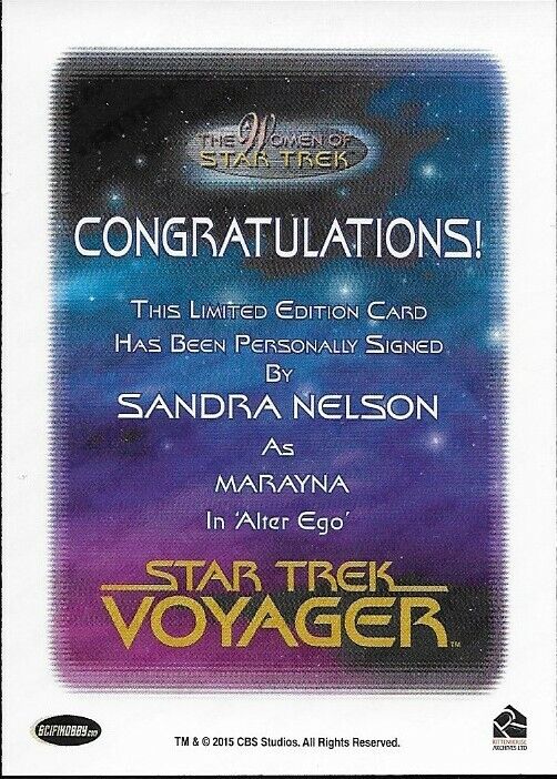 Carte autographiée de Sandra Nelson dans le rôle de Marayna tirée des femmes de Star Trek Voyager