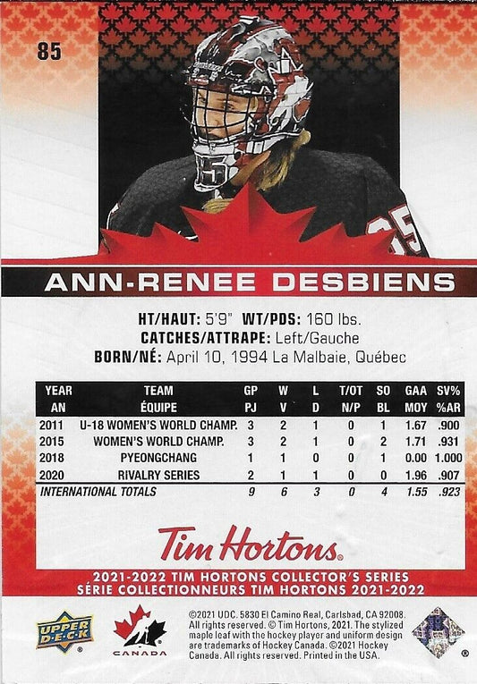 Carte Tim Hortons Upper Deck #85 signée Ann Renee Desbiens 21/22 originale