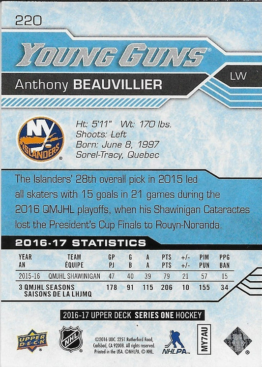 Signed Anthony Beauvillier Young Guns 2016-17 UD New York Islanders Rookie Card