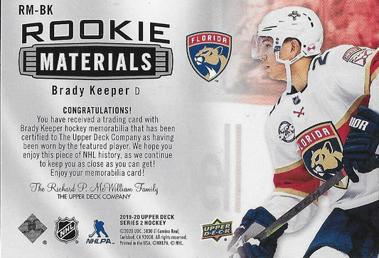 Carte signée Brady Keeper 19/20 UD Rookie Materials Florida Panthers RM-BK