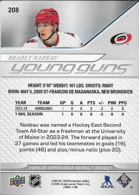 Signed Bradly Nadeau Young Guns 2024-25 UD Carolina Hurricanes Rookie Card