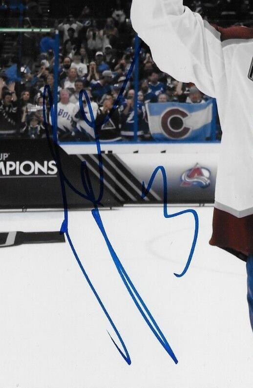 Photo autographiée de la Coupe Stanley 8x10 de Jack Johnson de l'Avalanche du Colorado n° 1 originale