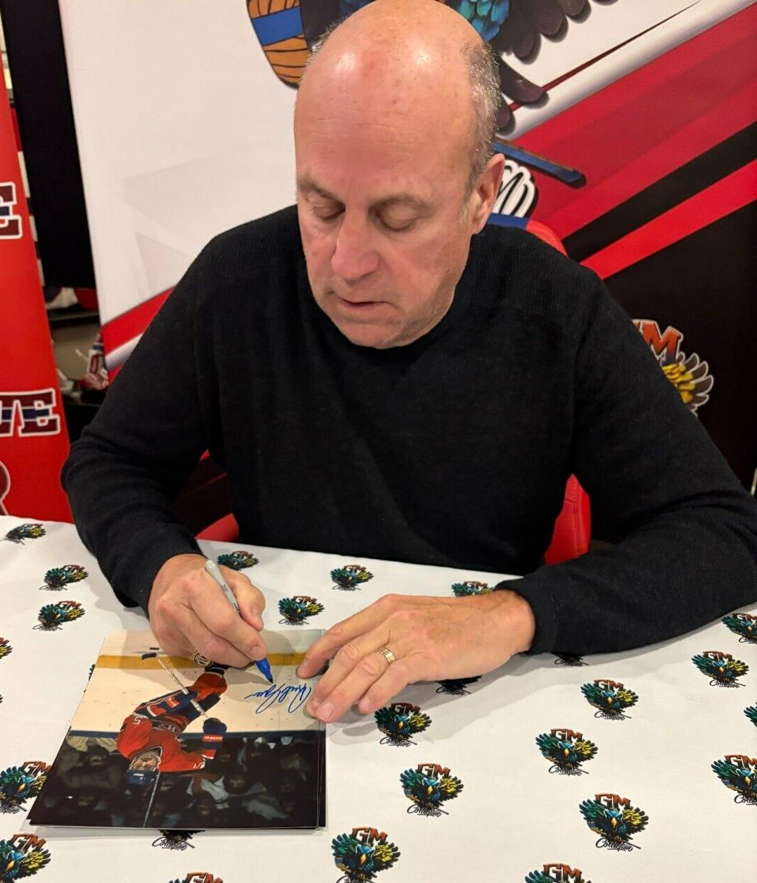 Great autographed Washington Capitals 8x10 Photo of Former Red Wing Rick Green. Obtained at a Private Signing, it is beautifully signed in Blue Sharpie, nice, clear and smudge free.