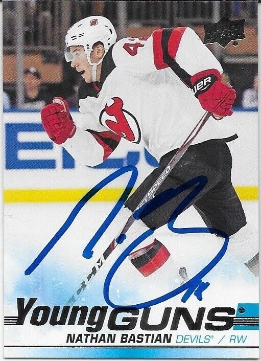 Autographed 19-20 UD New Jersey Devils Nathan Bastian Young Guns Rookie Card