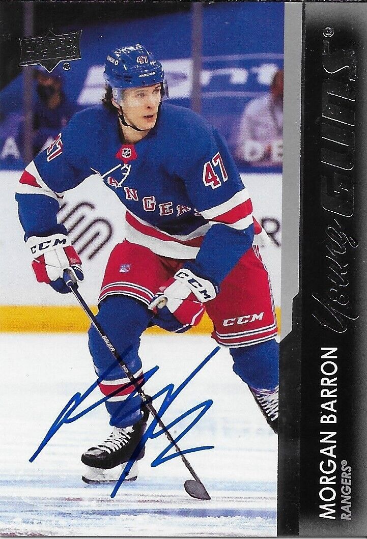 Autographed 2021-22 Upper Deck New York Rangers Morgan Barron Young Guns Card