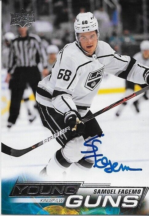 Autographed 2022-23 UD Los Angeles Kings Young Guns Samuel Fagemo Rookie Card
