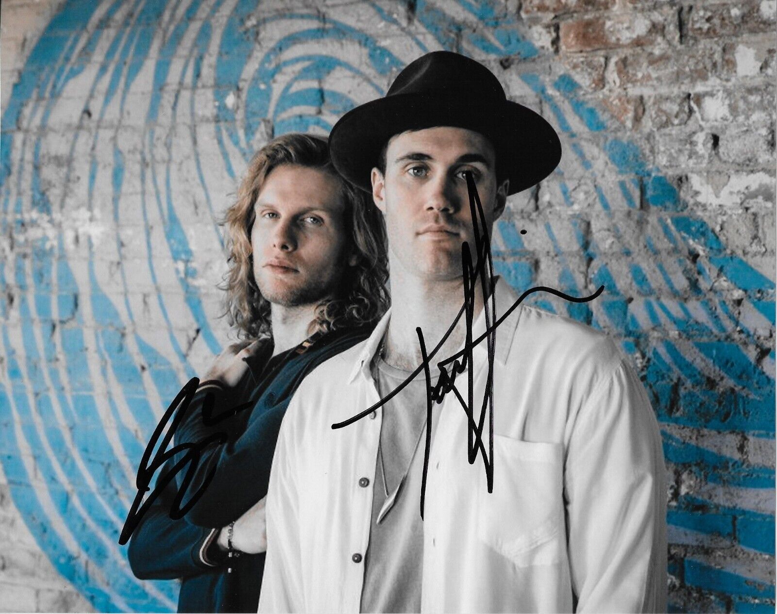 Great autographed Photo by Electronic Duo Bob Moses signed by Tom Howie and Jimmy Vallance. Obtained in person during their visit to Montreal, it is beautifully signed in Black Sharpie, nice, clear and smudge free.