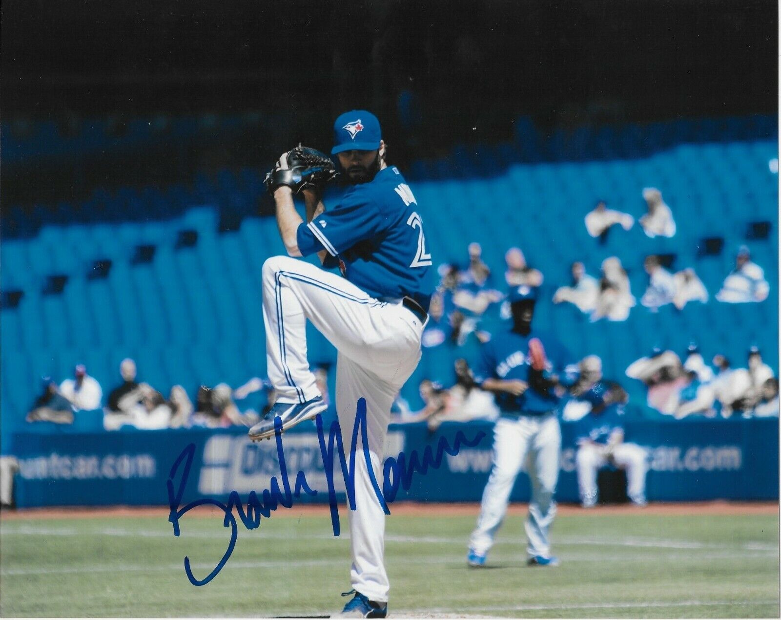 Great autographed photo of the Toronto Blue Jays Brandon Morrow. Obtained in Montreal in the last few years before an exhibition game played with the Toronto Blue Jays , it is beautifully signed in Blue Sharpie nice, clear and smudge free.